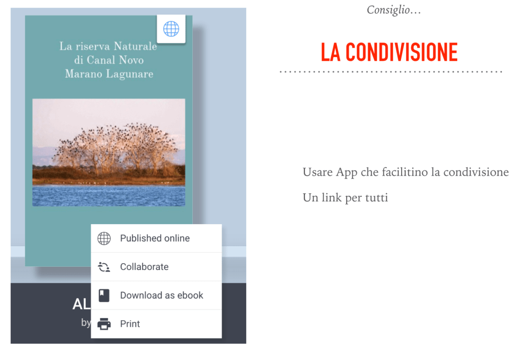 Per non complicarci la vita scegliamo la condivisione online che si può leggere su tutti i device: computer, tablet, smartphone.