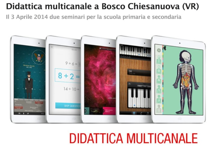 Il 12 marzo e il 3 aprile 2014 workflow didattici basati su iPad per la scuola primaria e secondaria.