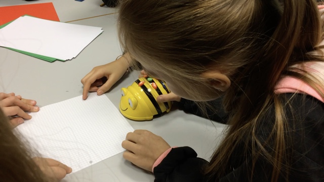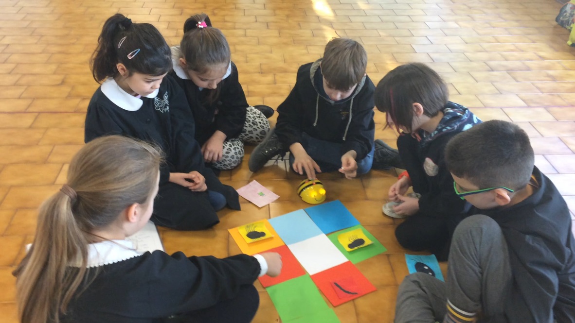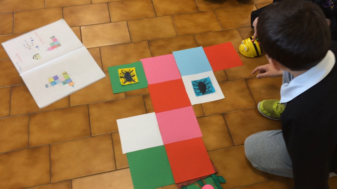 I bambini della classe prima vanno alla scoperta delle possibilità di movimento fino a scoprire che Bee Bot può andare a vanti, indietro, a destra e a sinistra. Le cose si complicano nella programmazione fino a capire che bisogna annullare la programmazione precedente. Poi è felicità!