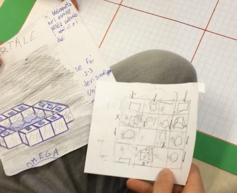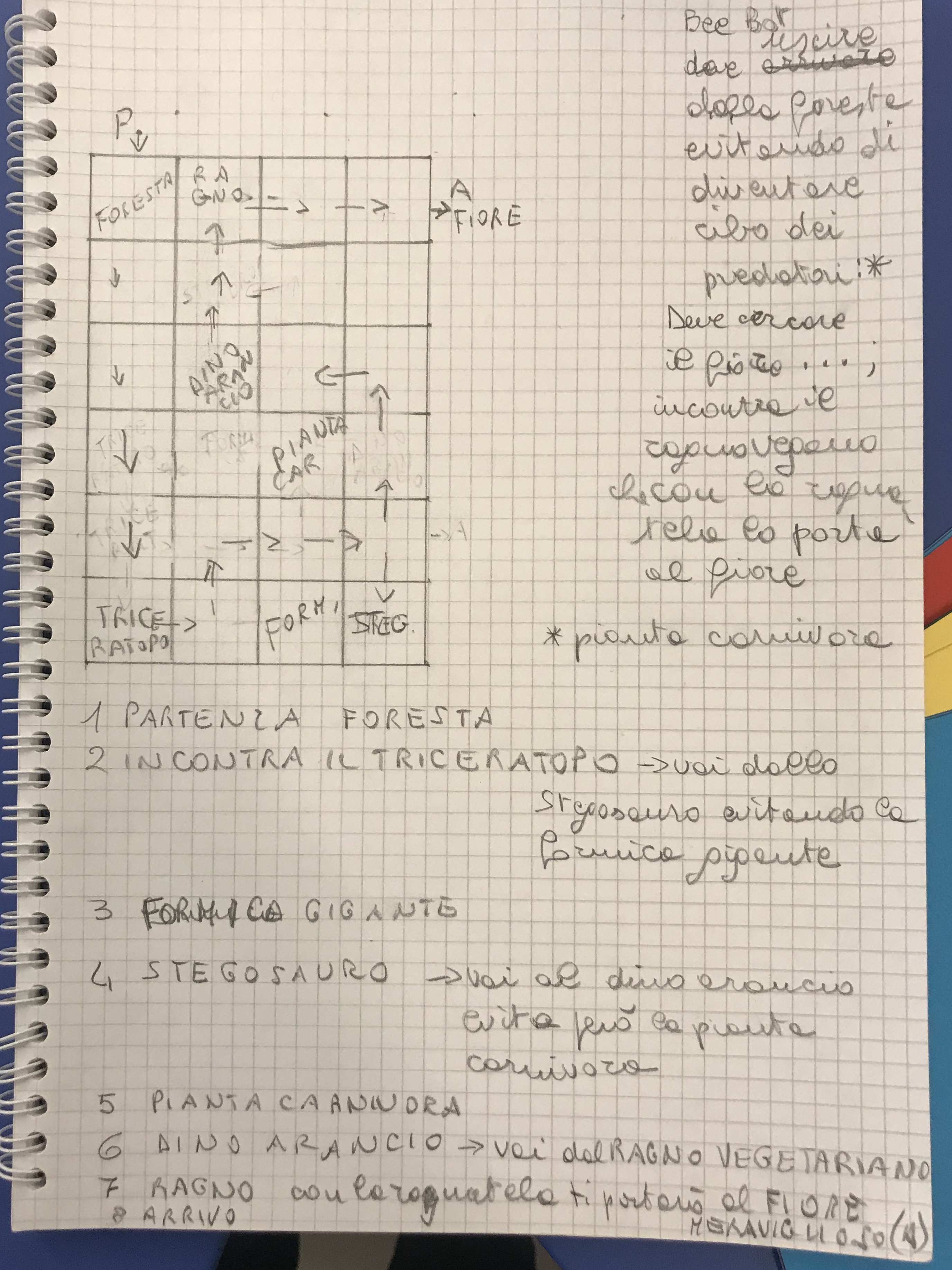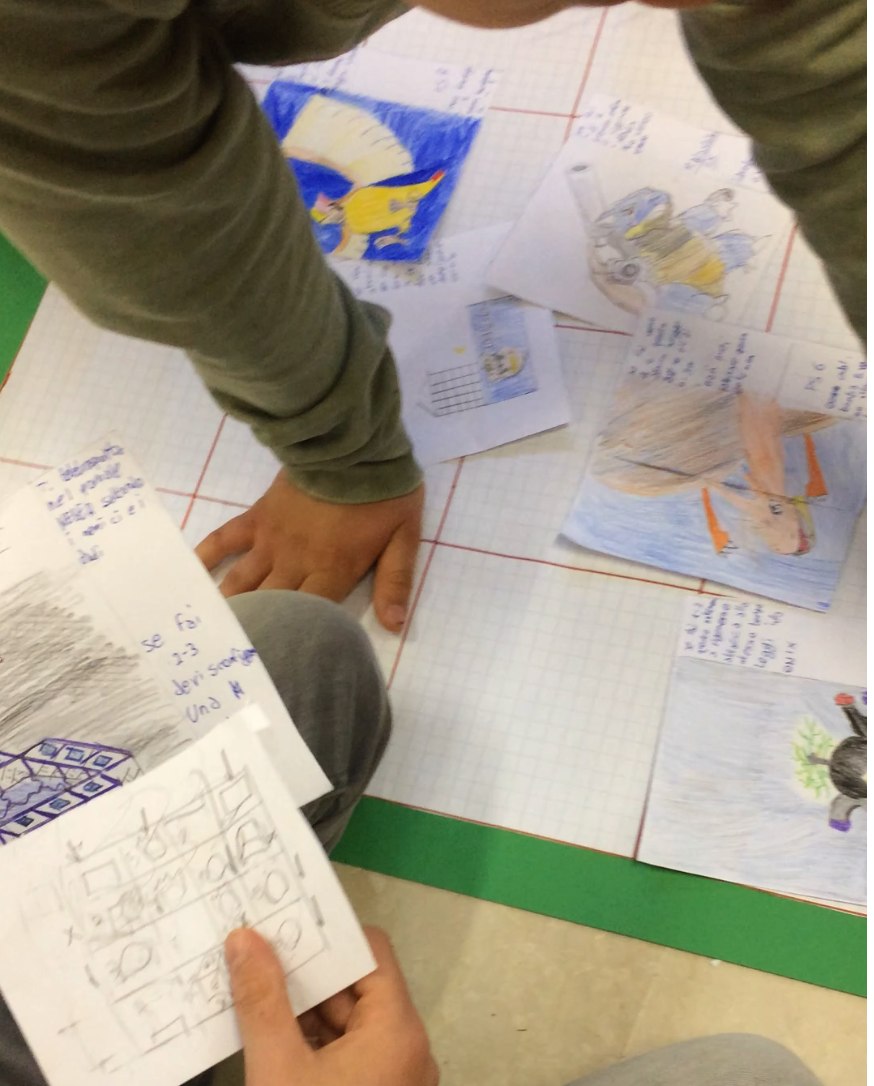Ogni gruppo ha posi scelto una tematica e ha rappresentato lo storytelling realizzando disegni e istruzioni direttamente su carta.