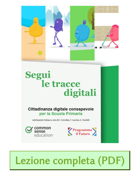 Ad esempio “SEGUI LE TRACCE DIGITALI” spiega attraverso lezioni già pronte, è possibile scaricare il PDF ed utilizzarlo, quanto è importante fare attenzione quando si usa internet.