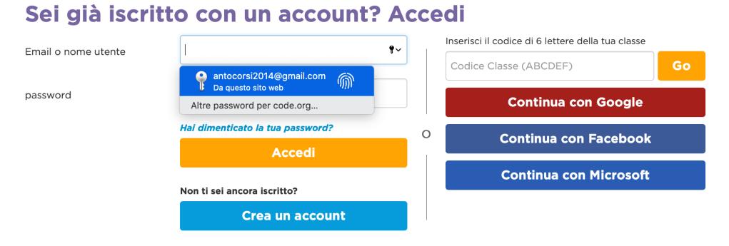 Accedere a code.org
