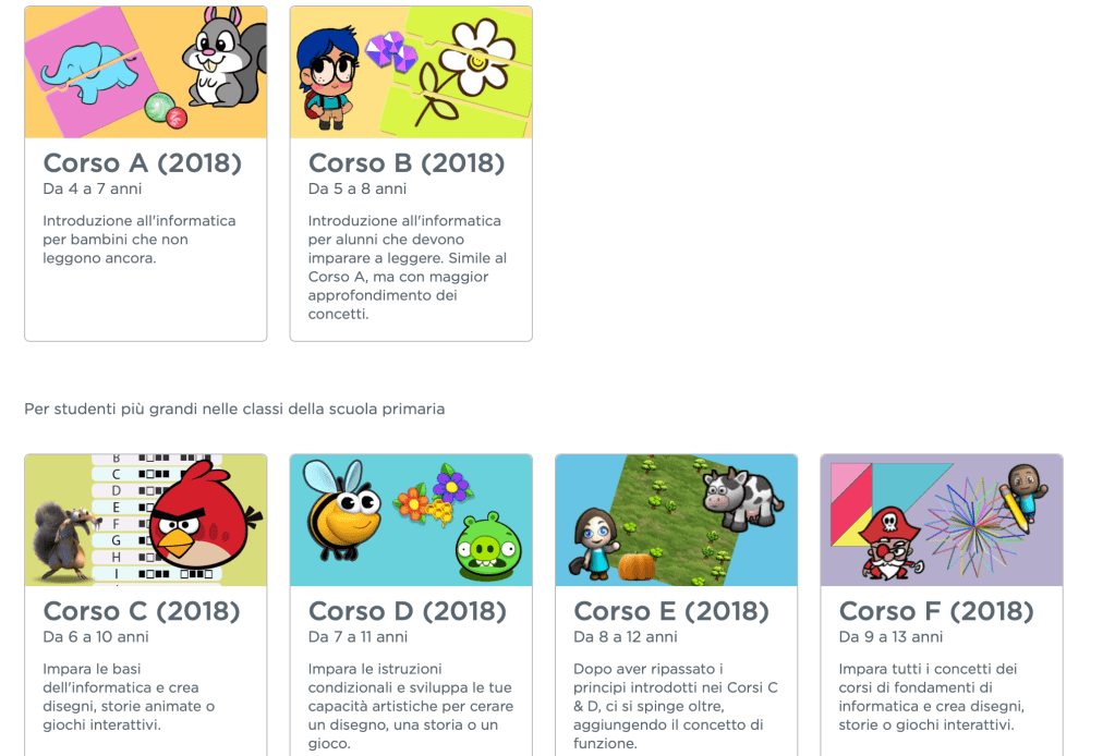 Dare un’occhiata alla pagina “riassuntiva” è pur sempre importante per saperci poi orientare. In essa sono infatti contenuti una serie di spunti ed indicazioni utili se vogliamo far diventare l’attività di coding una costante nella nostra classe.