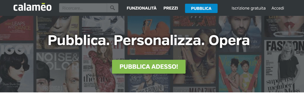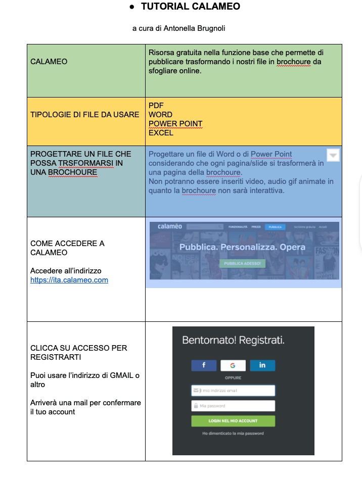 Calameo è un servizio Web Free che ci permette di registrarci, meglio usare gmail come indirizzo di posta, e godere di uno spazio personale dove trasformare i nostri file in brochoure condivisibili.