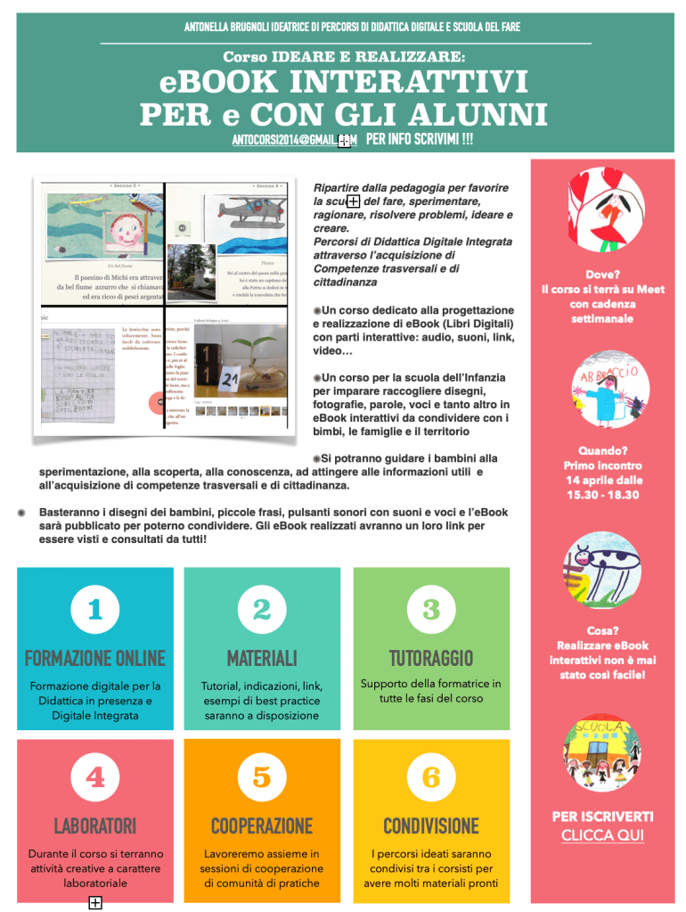 Un corso per imparare a realizzare eBook interattivi, con pulsanti, suoni e voci, link, disegni e fotografie.