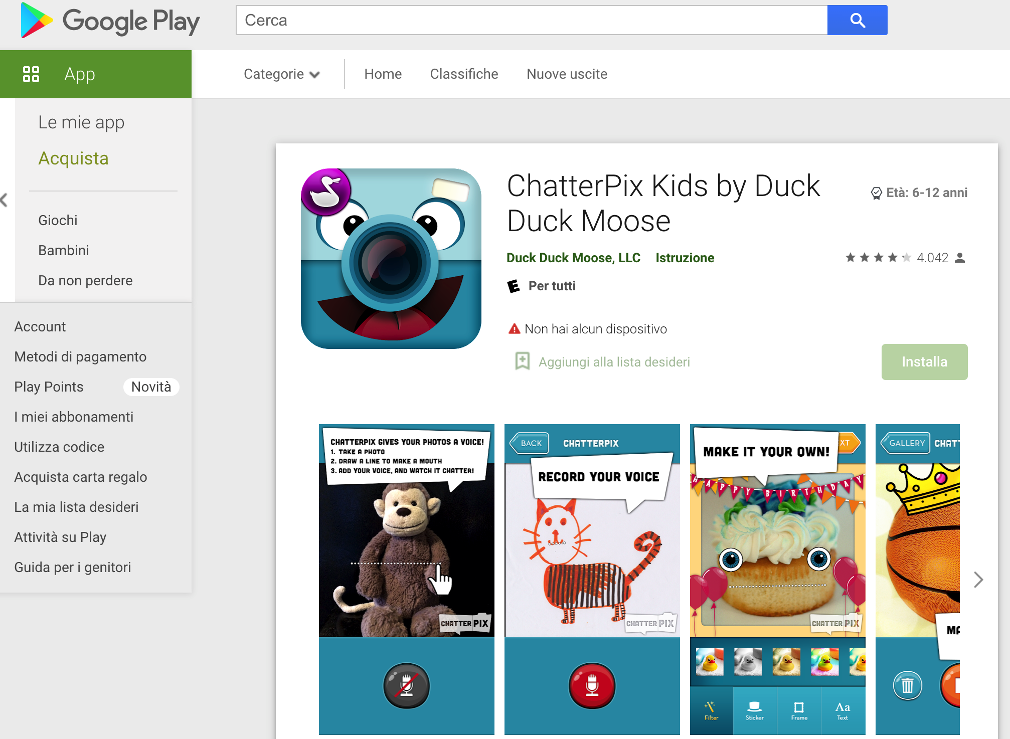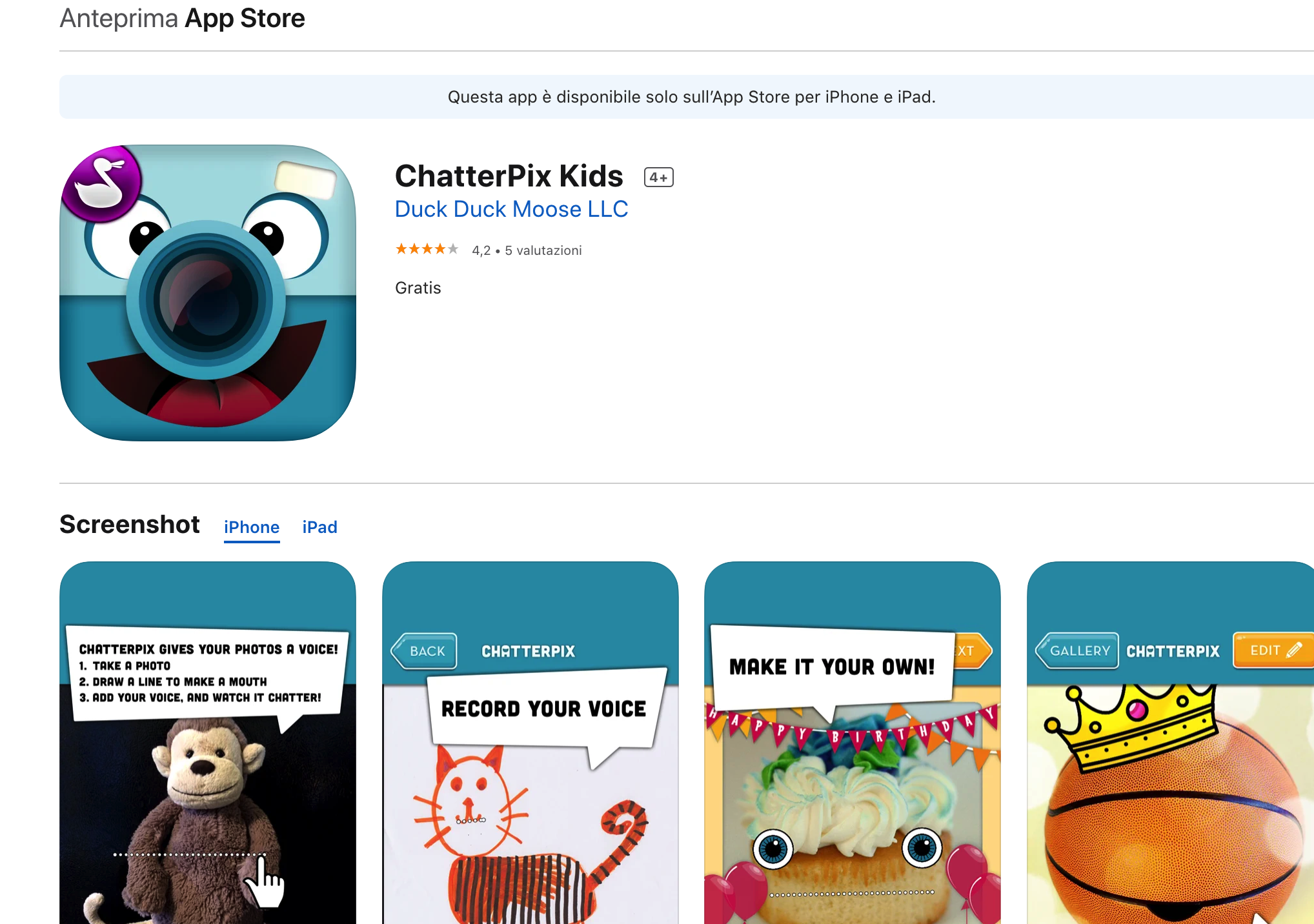 Per prima cosa scaricate l’APP necessaria: CHATTERPIX KIDS