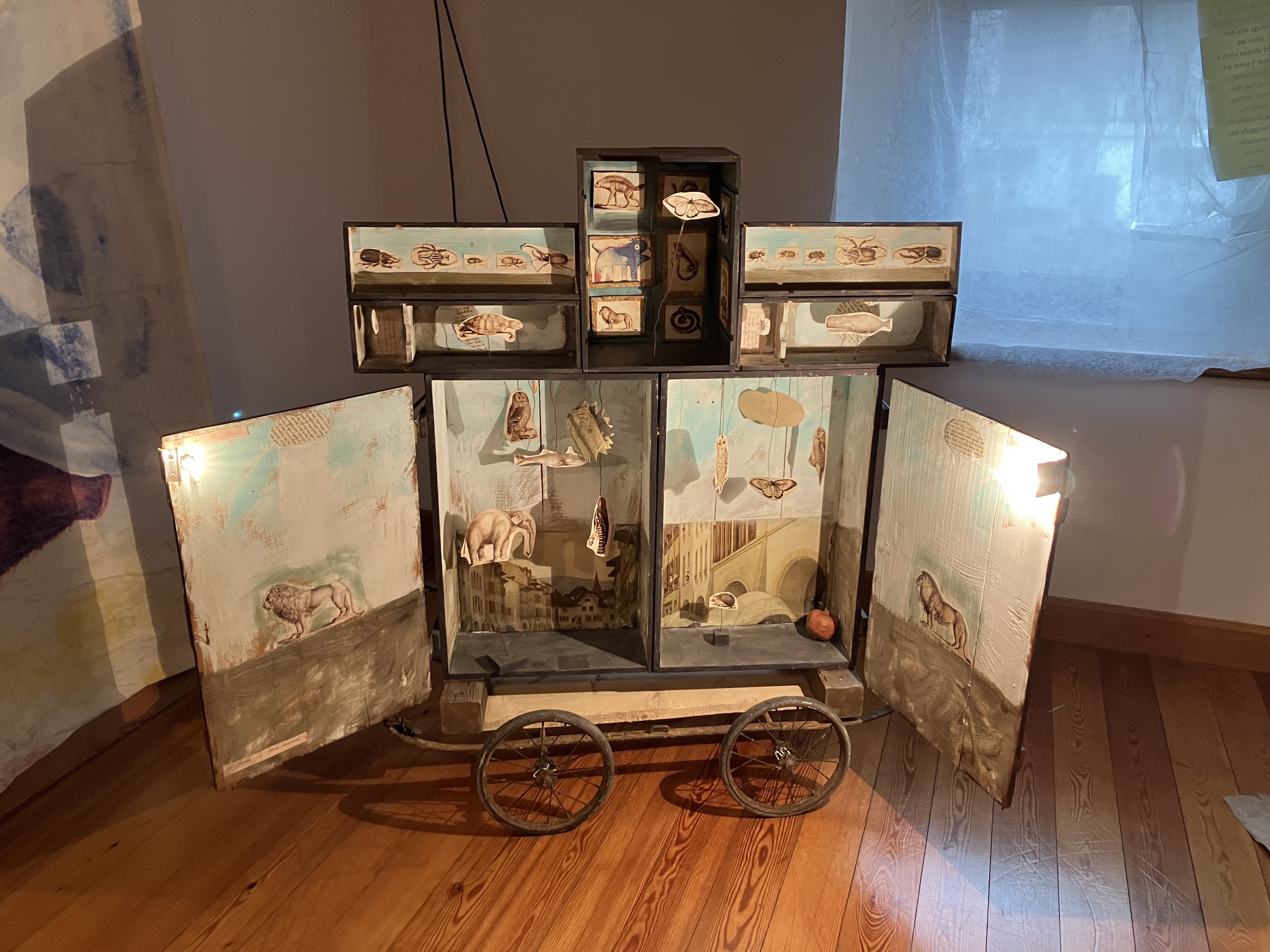 Da un “armadio sensibile” nasce La biblioteca delle Meraviglie, scaffalatura/mondo di libri fantastici, “presi a prestito” dalla Villa della Scalogna di Pirandello e letti in diretta da Catalano a spettatori di ogni età. Libri fai-da-te, di pietra, di pane, di foglie, di vento, contenenti le storie più strane, spesso sonore, primitive, fatte di balbettii, sussurri, vagiti, gramelot. “Dietro a una foglia troverai una soglia, se in fretta la passi troverai un sasso, dietro un sasso è disegnata una foglia, dietro ogni foglia è disegnata una soglia”. Il bosco, la natura come Biblioteca delle meraviglie. Si leggono foglie come racconti d’avventura, si legge il vento come una favola che arriva dall’oriente. Tutto si può “leggere” come un grande libro, nel quale si rinnova lo sguardo stupito del bambino che scopre il mondo sensibile. Allora mettiamo in fila foglie, fiori, rametti, terra e facciamo un piccolo concerto sentimentale, in cui il raccontare è fatto di suoni e di sospiri. Come una grande biblioteca sonora e di parole perdute, il nostro piccolo giardino ci può far scoprire l’anima che abita le piccole cose della terra.