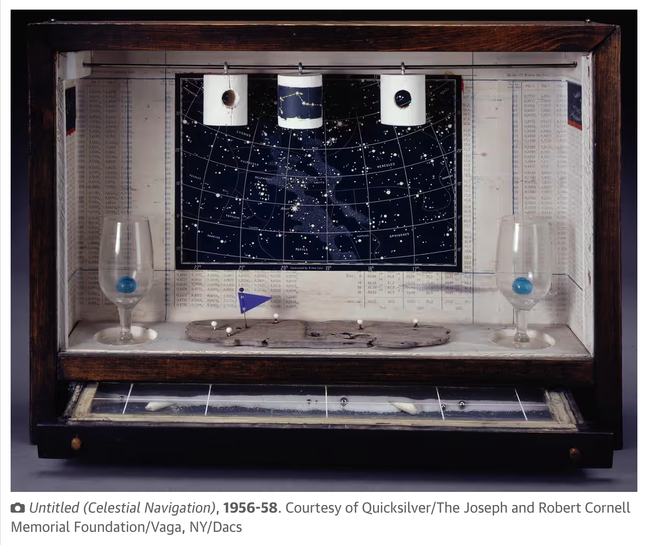 Instancabile cacciatore di immagini, Joseph Cornell potrebbe essere definito non un pittore, ma più simile ad uno scultore. Allontanandoci dalla definizione classica di scultore che prevede il modellare un materiale grezzo per trarne una forma, possiamo pensare a Cornell come un assemblatore, termine mutuato dal francese assemblage.
