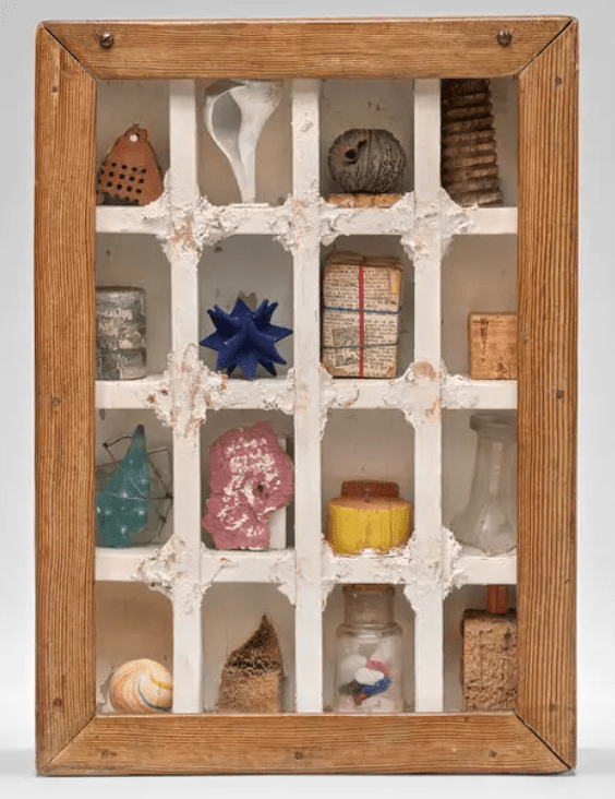 Raccoglie per le vie di New York oggetti d’ogni tipo (scarti d’immondizia, biglietti dei tram, scontrini, ritagli di immagini da riviste, cinturini d’orologi, pezzi di legno o vetro, rami, foglie, bottiglie, ecc…) per poi assemblarli in scatole di legno poste in verticale, rigorosamente fai da te, coperte da un vetro frontale.