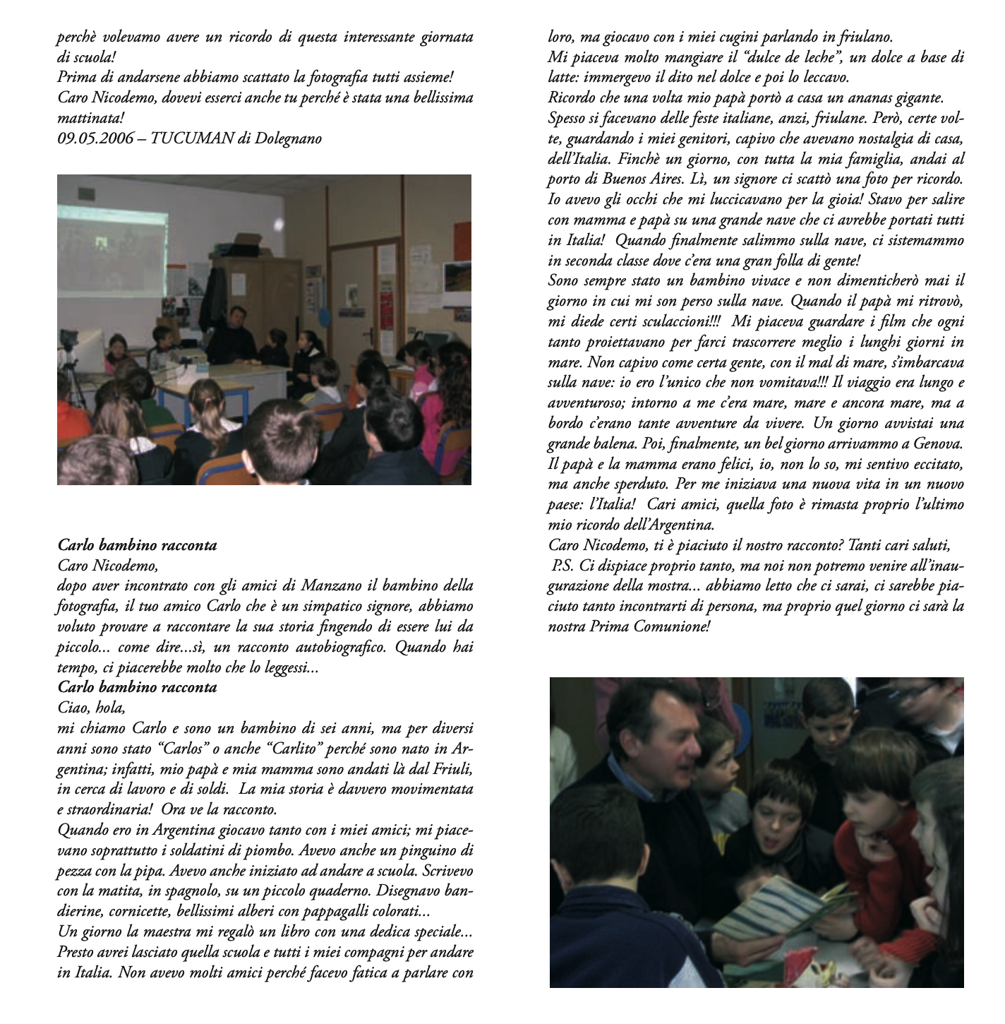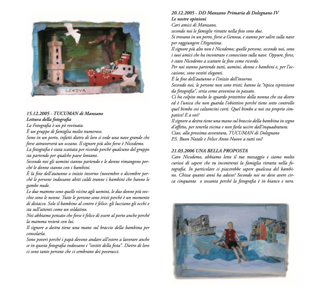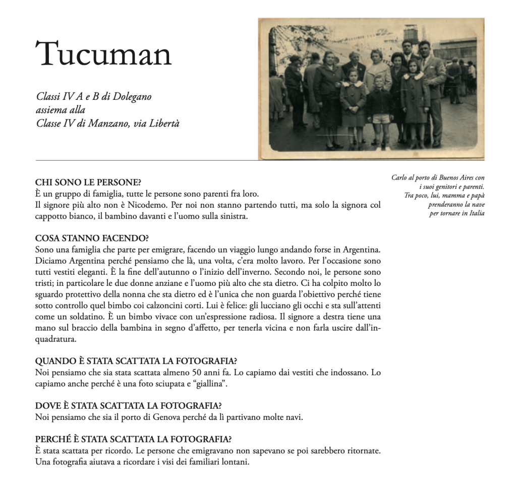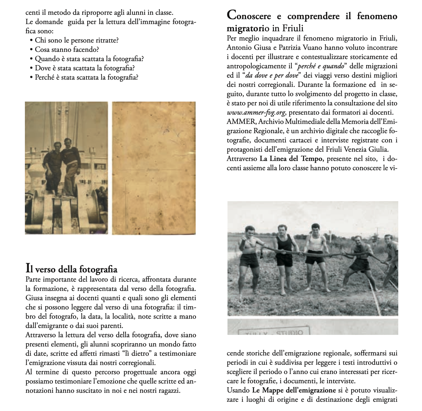 Le fotografie sono state reperite dalle insegnanti stesse da emigranti rientrati in Friuli che poi si presenteranno nelle classi a raccontare la loro storia di migranti.