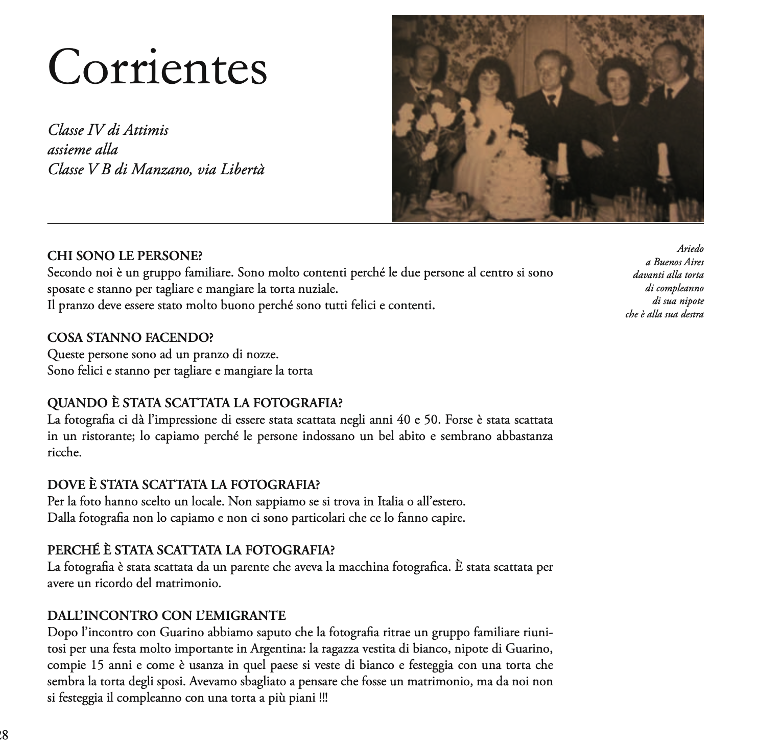 Partendo da un’immagine fotografica della emigrazione friulana, due classi gemellate fra loro, cercano informazioni ed indizi per ricostruire l’esperienza di emigrazione delle persone ritratte in foto.