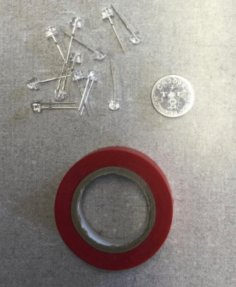 Se ne posiziona una parte in un lato della pila bloccando uno dei due diodi all’interno, quindi si blocca completamente il led lasciando l’altro diode all’esterno. Lo spessore del nastro isolante è tale da impedire il contatto tra pila e led, ma nello stesso tempo è sufficiente da permettere di chiiudere il circuito con una leggera pressione.